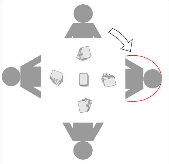 Player 1’s turn is finished, and play moves to the next player to the left.