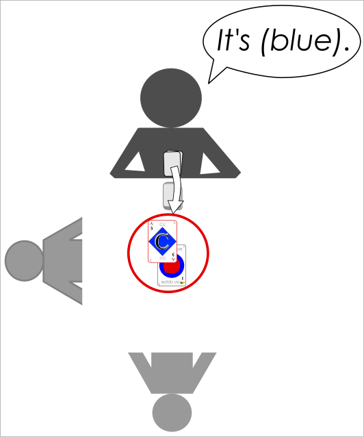 4. The matching element must be declared: “It’s blue.” “It’s a seven.” “It’s a food.” etc.