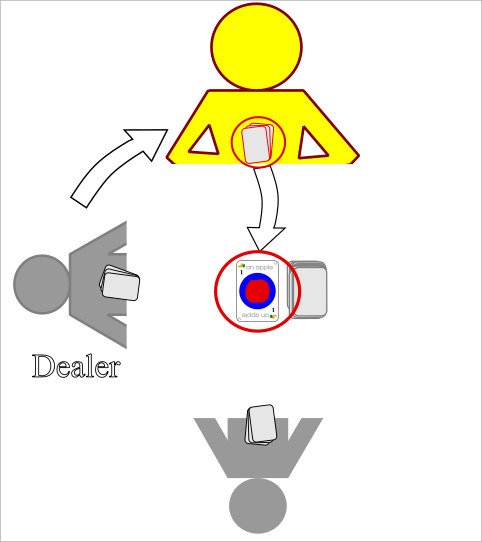 3. Player 1 (to the left of the dealer) may play one card on the central card if a match exists.